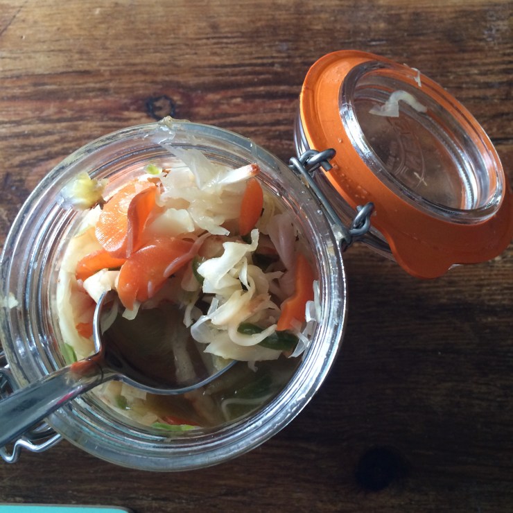 Now that I have gotten over the “shock horror” thought of fermentation, here is a quick and easy recipe I was given for some homemade coleslaw, which, once made can be kept in a sealed jar in the fridge for as long as you want, or in my case as long as it lasts, which isn’t too long. This slaw tastes more like a vinaigrette type slaw than a creamy one, which to be honest I much prefer. Continue reading “Fermented Coleslaw”